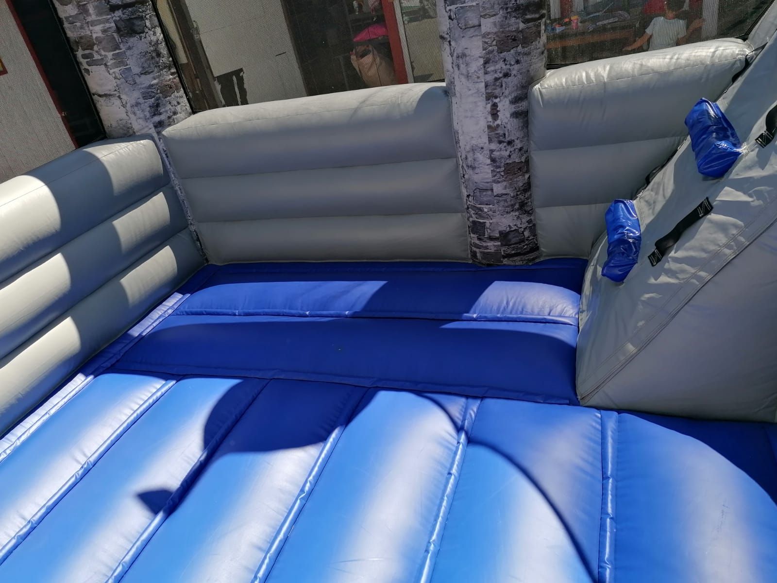 Auf ins Drachenland! Flitz durch den coolen Tunnel direkt ins Hüpfabenteuer! An der Seite wartet ein riesiger blauer Drache auf dich. Drinnen kannst du hüpfen, toben und über die lange Rutsche sausen – ein Riesenspaß für alle kleinen Drachenreiter!